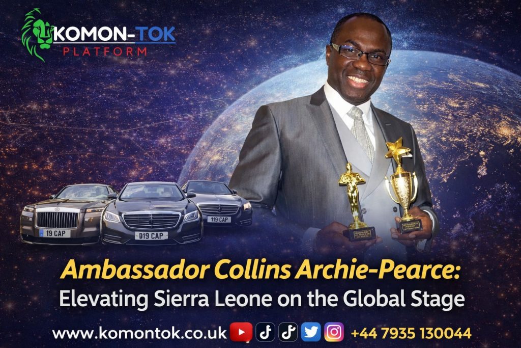 Ambassador Collins Archie-Pearce is one of Sierra Leone’s most accomplished cultural ambassadors, whose remarkable journey from Freetown to international recognition exemplifies creativity, leadership, and global impact. Based in the United Kingdom since 1991, Archie-Pearce has become a powerful force in film, mentorship, and cultural advocacy, effectively bridging Africa and the world.