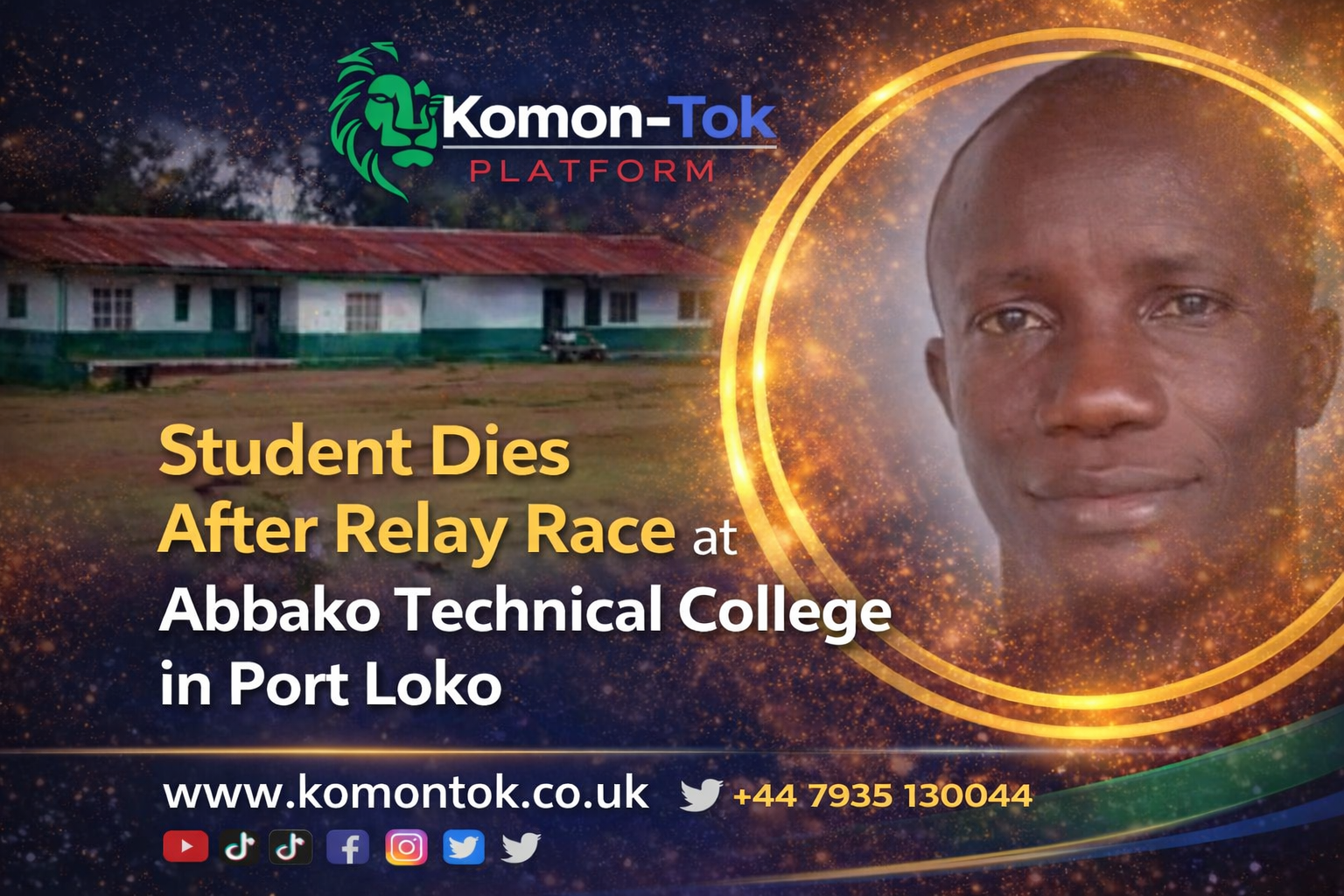 A sports meet at Abbako Technical College in Port Loko turned tragic on Friday, 9 January 2026, when Year Two HTC student Abdul Sesay of Red Hall collapsed shortly after completing a relay race and was later pronounced dead at Port Loko Government Hospital.