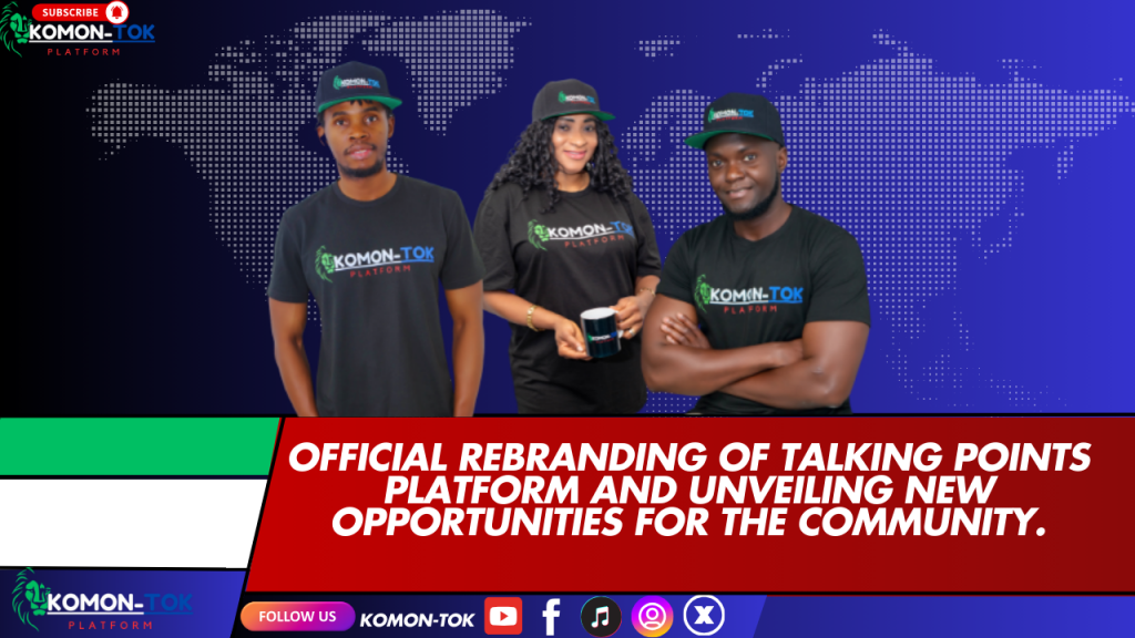 Today marks a transformative moment as the Talking Points Platform unveils its new identity, reflecting a bold vision for the future. This rebranding signifies a shift towards deeper engagement, inclusivity, and innovation, with a renewed commitment to fostering critical conversations that drive change. At the heart of this evolution is a promise to work towards a better Sierra Leone, amplifying voices, addressing pressing issues, and empowering communities to shape their future. The updated tagline, “Komon-Tok Platform,” captures the platform’s mission to bridge divides and inspire action for a more equitable and prosperous society. With a refreshed logo, vibrant colors, and cutting-edge features, the Komon-Tok Platform is now poised to serve as a catalyst for progress in Sierra Leone and beyond. Together, we create solutions—one conversation at a time.